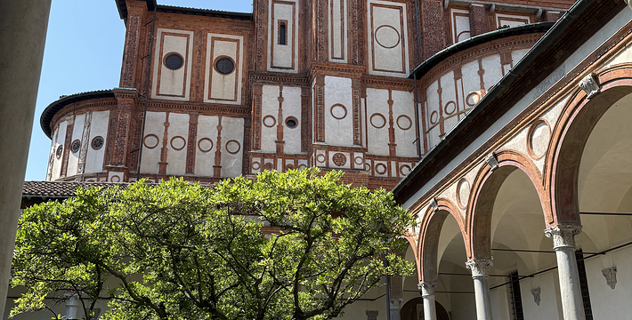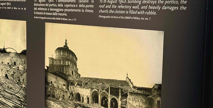 教堂以会院食堂内列奥纳多·达·芬奇所作的壁画《》而著称,1980年列为世界物质文化遗产。1943年8月15日,教堂和会院遭到英美飞机轰炸,会院食堂大部分被毁,但是《》所在的那面墙却得以幸存