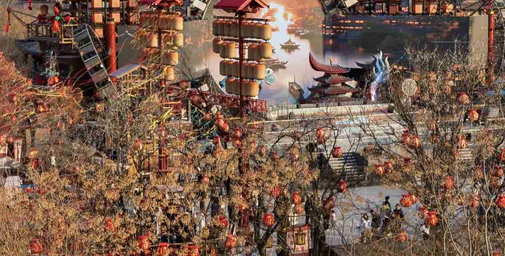 在园中游玩时还能看到“包公巡汴京河”、“王员外嫁女儿”、“岳飞沙场点兵”、“斗鸡比赛”、“踩高跷”、“蹴鞠比赛”等一系列具有北宋特色的故事场景演出和民俗表演。