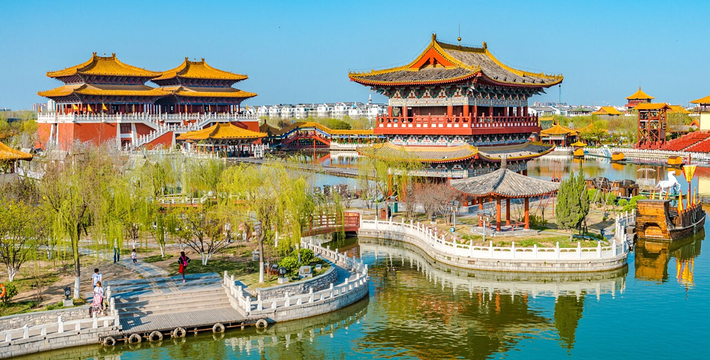 在这里你将置身于一个庞大的仿宋古建筑群中。进入园中会看到拂云阁、虹桥、水心榭、双亭桥、九龙桥等一批北宋时期开封知名的建筑,此外还有酒楼、茶肆、当铺等平民生活设施。而园中的工作人员、小商小贩们,都身穿宋朝的服饰。这些都会让你产生错觉:一脚踏入了北宋时代的东京汴梁。另外还可以带着小朋友去“趣园”、“大宋游艺”等处,玩一玩投镖、射箭爬绳、钻圈等,体验一下宋朝游戏的乐趣。