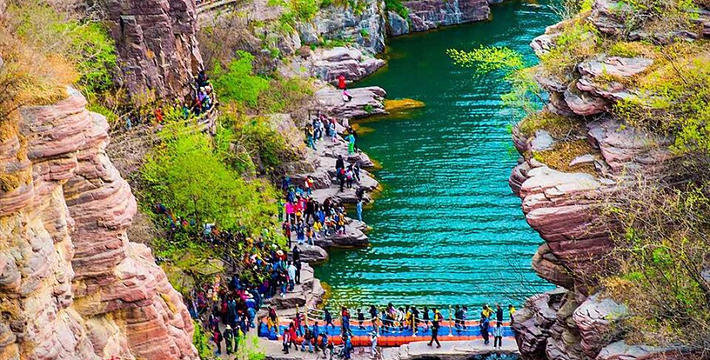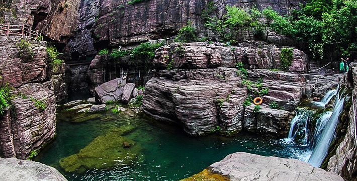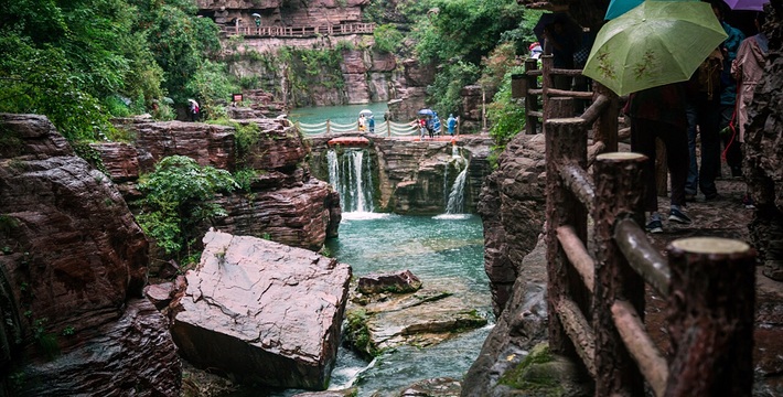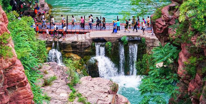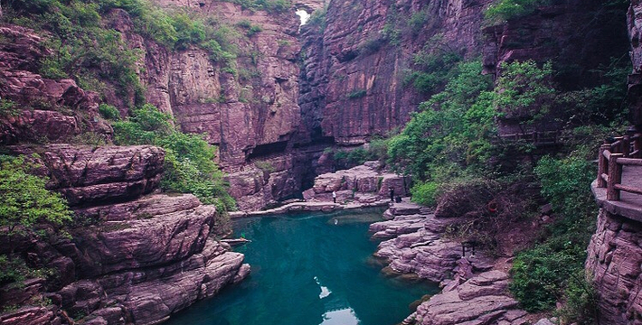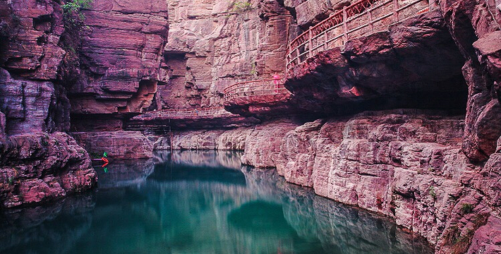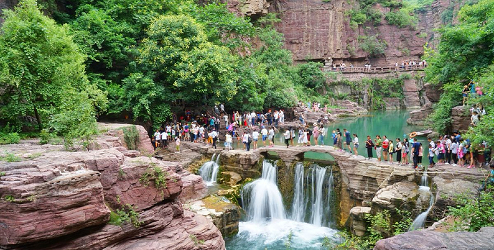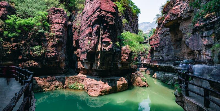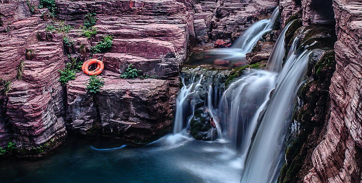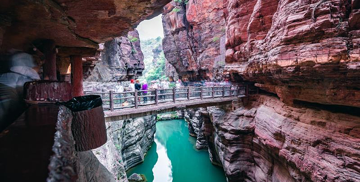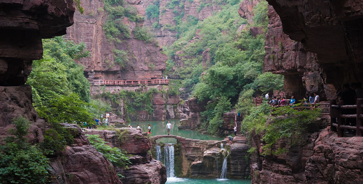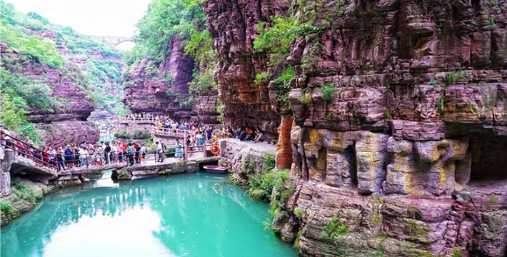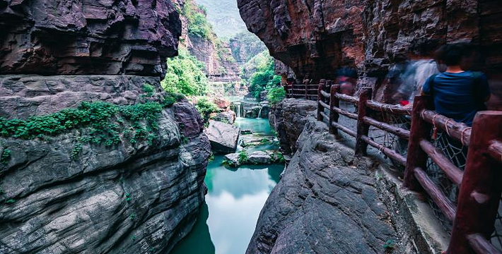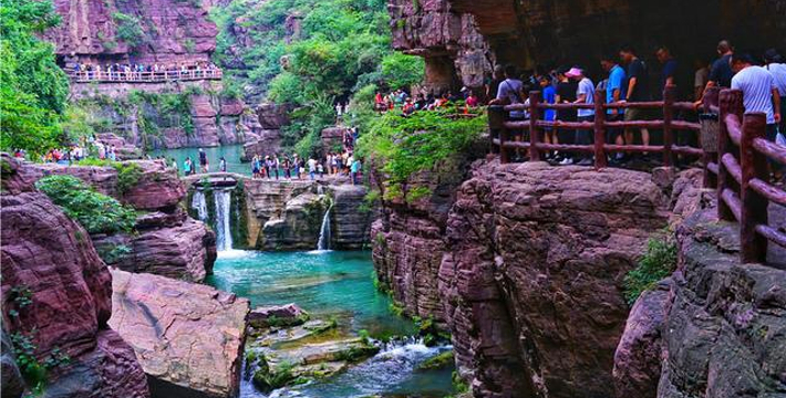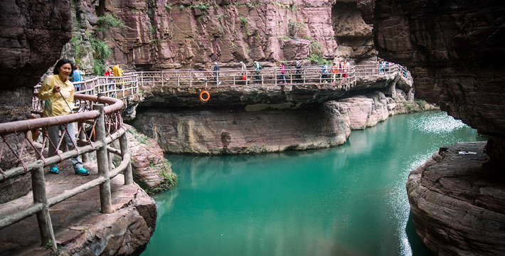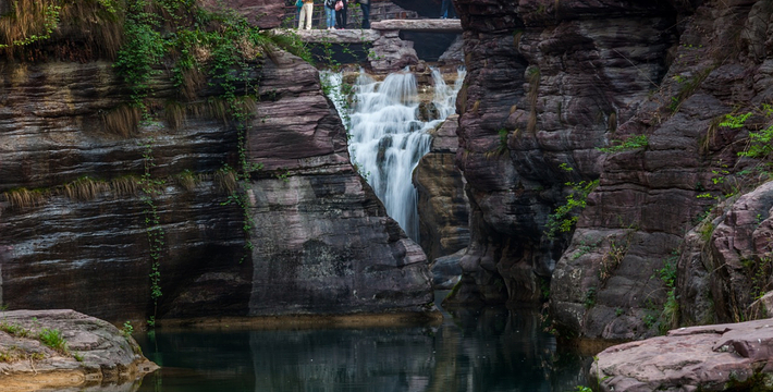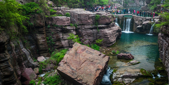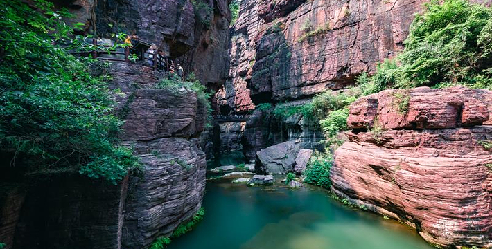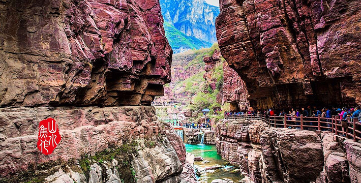 游览所需要的大致时间:一个半小时左右,全长2000米,单行线景点。 红石峡(温盘峪)位于子房湖南,峪内夏日凉爽宜人,隆冬苔卉莳草翠,故称红石峡。它集泉瀑溪潭涧诸景于一谷,融雄险奇幽诸美于一体,被风景园林专家称赞为“自然山水精品廊”。谷里分布“首龙潭”、“黑龙潭”、“青龙潭”、“黄龙潭”、“卧龙潭”“眠龙潭”、“醒龙潭”、“子龙潭”、“游龙潭”,构成“九龙溪”。还有“幽瀑”、“穿石洞”、“相吻石”、“双狮汲水”、“孔雀开屏”、“棋盘石”等景观。谷口南端有一狭窄的峡谷称为“一线天”,且有瀑高50余米的白龙瀑布。两侧高山耸立,恰似一个石阙,正好是云台山的西大门。