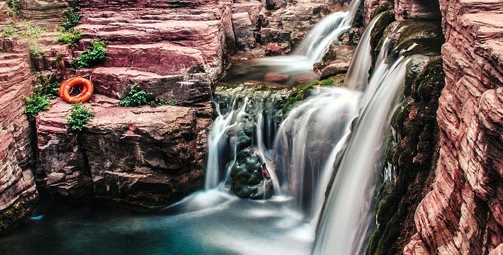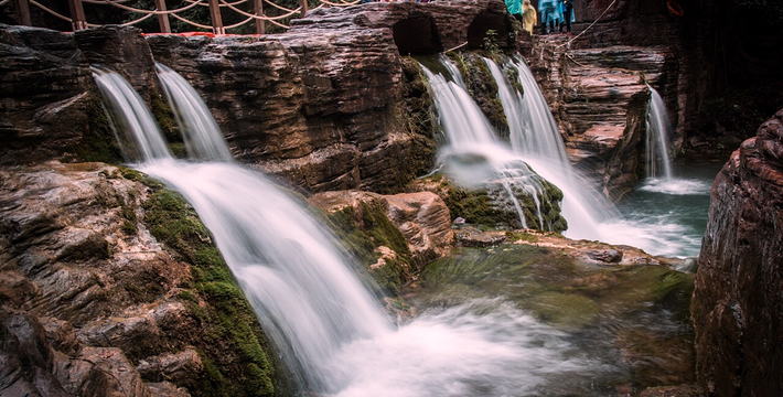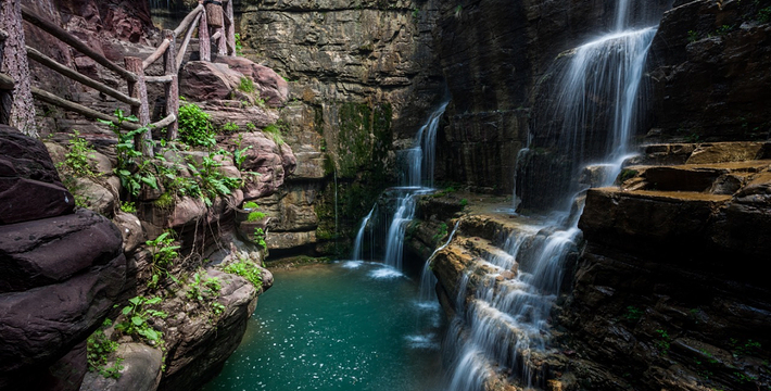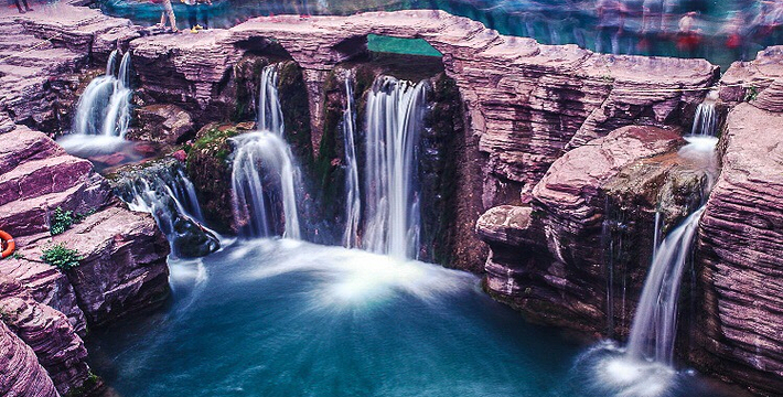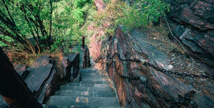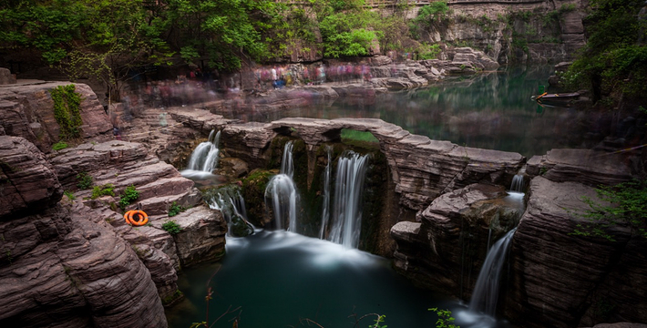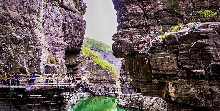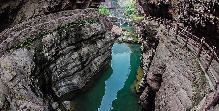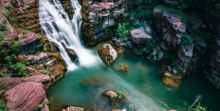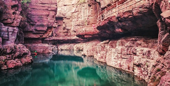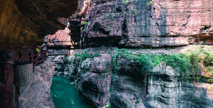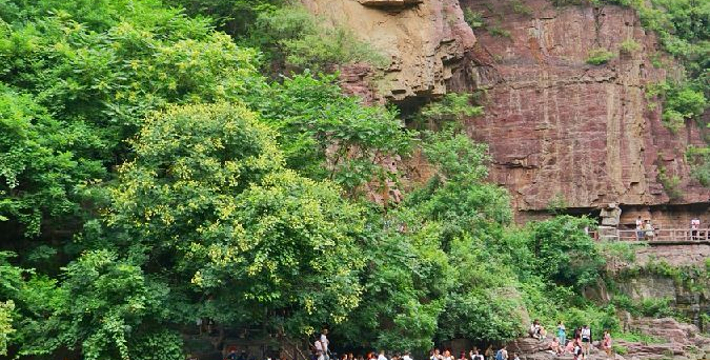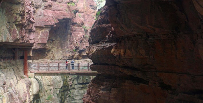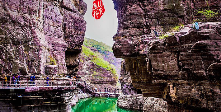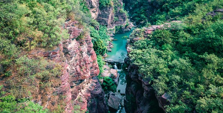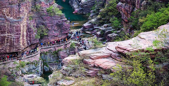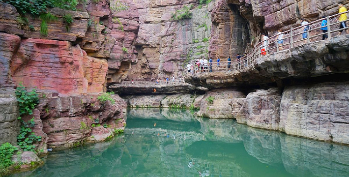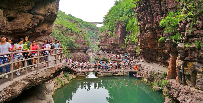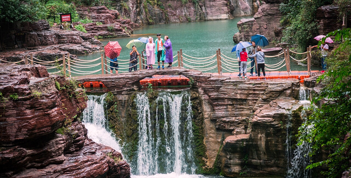 游览所需要的大致时间:一个半小时左右,全长2000米,单行线景点。 红石峡(温盘峪)位于子房湖南,峪内夏日凉爽宜人,隆冬苔卉莳草翠,故称红石峡。它集泉瀑溪潭涧诸景于一谷,融雄险奇幽诸美于一体,被风景园林专家称赞为“自然山水精品廊”。谷里分布“首龙潭”、“黑龙潭”、“青龙潭”、“黄龙潭”、“卧龙潭”“眠龙潭”、“醒龙潭”、“子龙潭”、“游龙潭”,构成“九龙溪”。还有“幽瀑”、“穿石洞”、“相吻石”、“双狮汲水”、“孔雀开屏”、“棋盘石”等景观。谷口南端有一狭窄的峡谷称为“一线天”,且有瀑高50余米的白龙瀑布。两侧高山耸立,恰似一个石阙,正好是云台山的西大门。