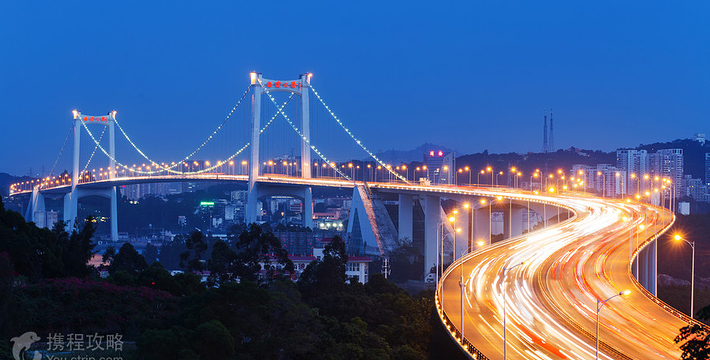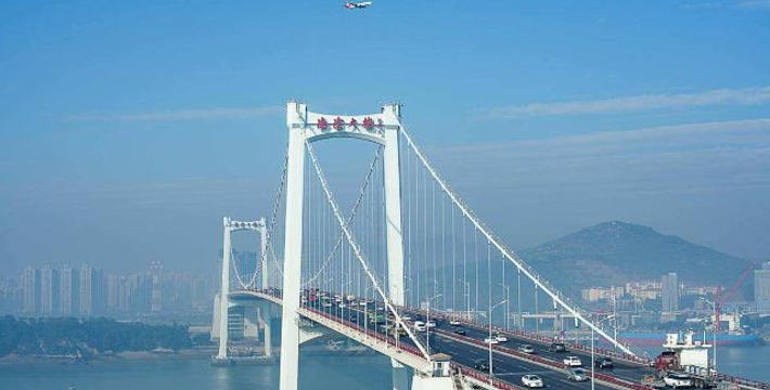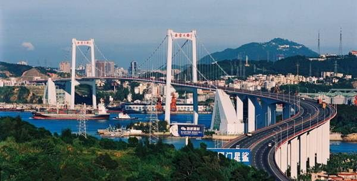 厦门海沧大桥,是世界第二,工程全长5926.527米,主跨648米,海沧大桥设计通行能力为50000辆每日,行车时速为80公里每时,工程概算总投资28.7亿人民币。海沧大桥不仅是厦门与外届联系的又一重要通道,更是现代化厦门的重要标志,同时也是厦门新兴的旅游景点,其优美流畅的桥梁造型,轻巧独特锚、塔结构、与周围环境协调一致的桥梁色彩,轻柔的夜景效果等等,都将与厦门这座现代化国际性港口风景旅游城市相适应。大桥的建设也证明我们已达到世界造桥水平。
