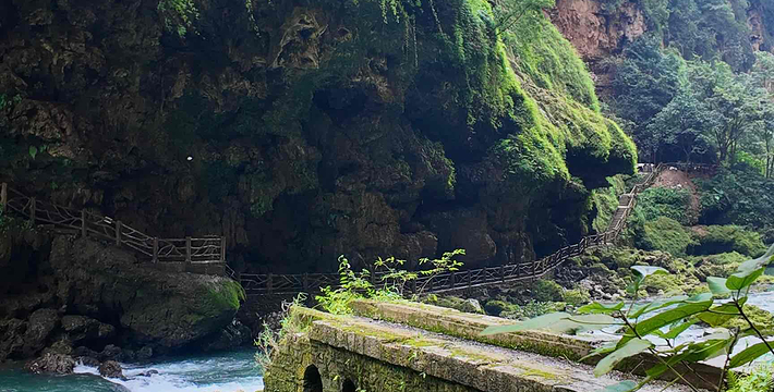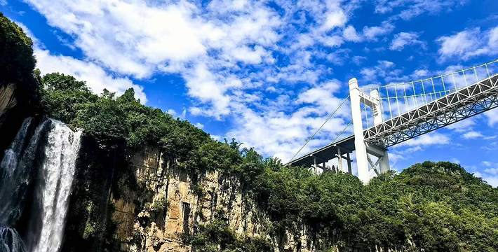 行走在吊桥上,飞驰而下的瀑布会撒给你一身清凉!