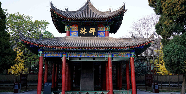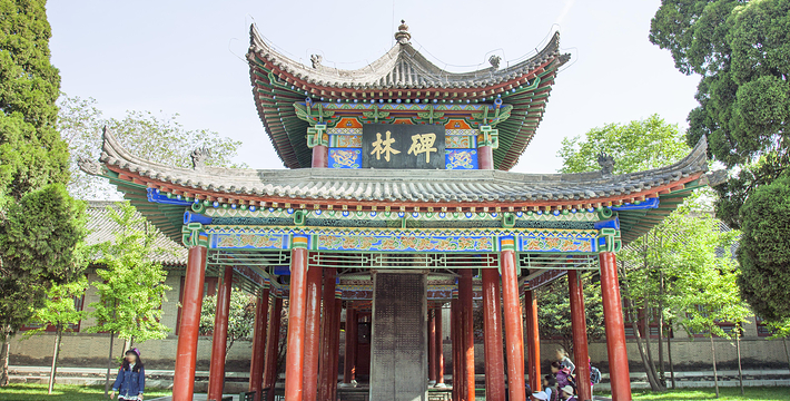 西安碑林座落于著名古城西安市三学街(因清代的长安学、府学、咸宁学均设在这里而得此名)。它于北宋二年(公元1078年)为保存《开成石经》而建立。九百多年来,经历代征集,扩大收藏,精心保护,入藏碑石近三千方。现有六个碑廊、七座碑室、八个碑亭,陈列展出了共一千零八十七方碑石。在名碑荟萃的展室里,展示了圣儒、哲人的浩瀚石经;秦汉文人的古朴遗风;魏晋北朝墓志的英华;大唐名家的绝代书法以及宋元名士的潇洒笔墨。