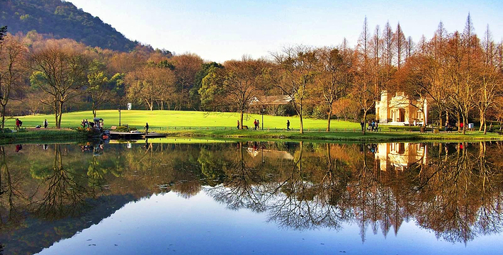 太子湾公园引东邻净慈寺、天园及张苍水墓祠、章太炎墓道,西接南高峰,北有一长列高大葱郁的水杉密林,如翠帷中垂,与车水马龙的南屏路相隔,颇似一把太师椅的椅座。