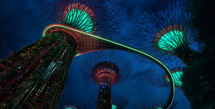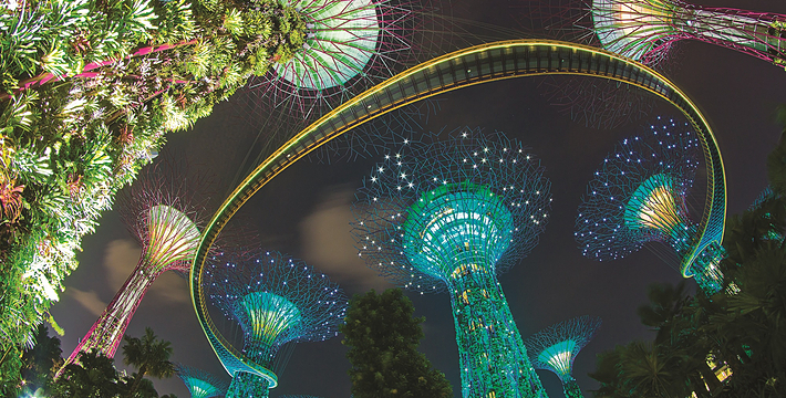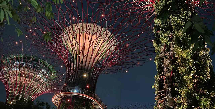 新加坡令人为之惊叹的“绿色新天地”这座超级花园占地面积达101公顷,造价10亿元,囊括逾25万棵珍稀植物。它离市区很近处,约步行五分钟即可抵达。滨海湾花园作为一个示范项目,展示新加坡作为花园中的热带城市的精髓,打造适宜居住、工作和娱乐的完美环境。