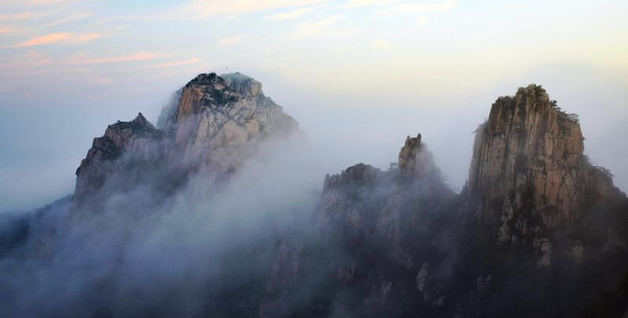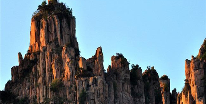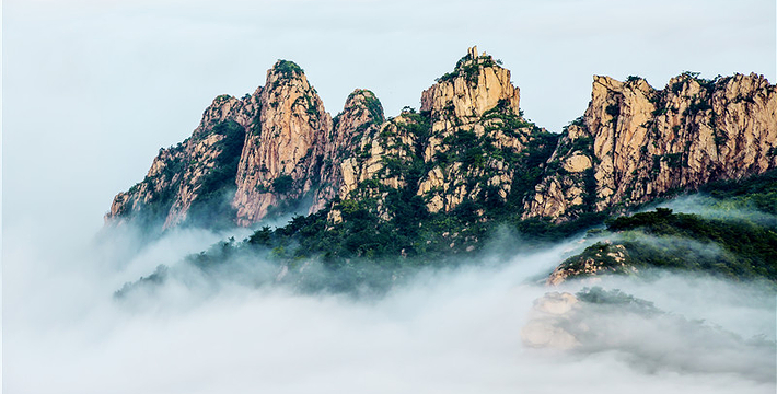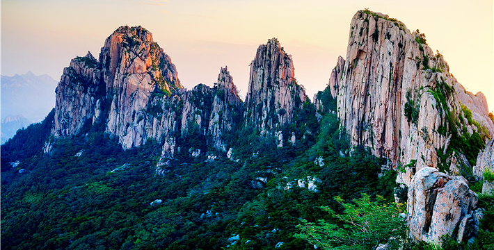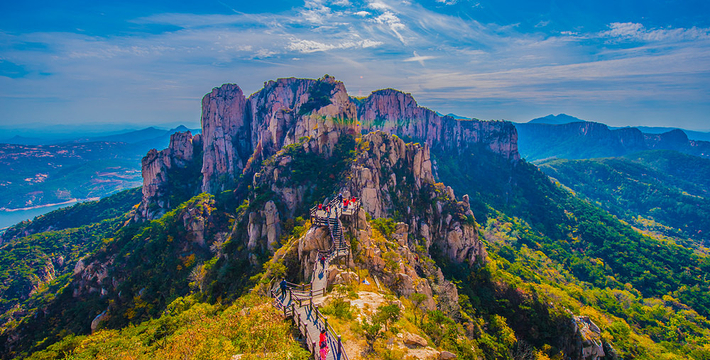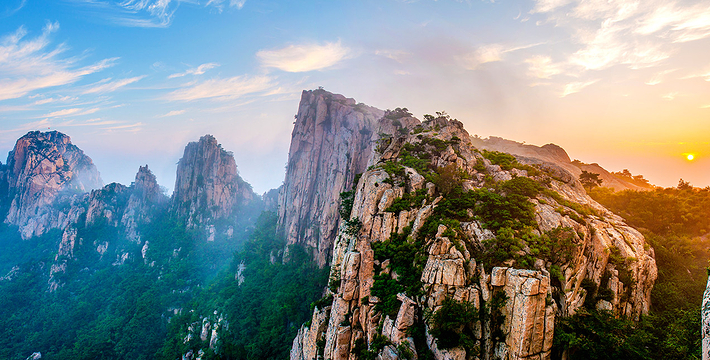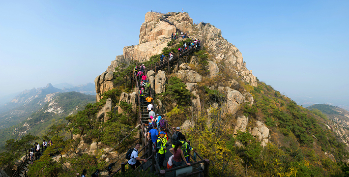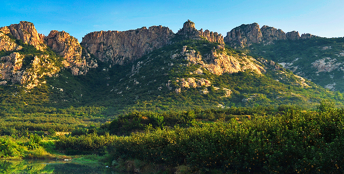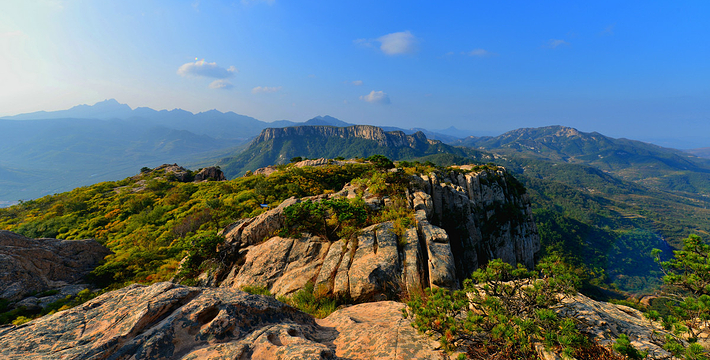 天崮山奇峰林立、异石遍地、悬崖峭壁好似刀削斧劈,这样的景色在丘陵遍布的胶东地区实属罕见。