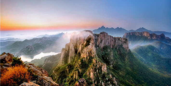 天崮山矗于烟台栖霞市西北端的苏家店镇,北临龙口,东衔蓬莱、西眺招远,四市交界;因地处群山环抱之中,天崮山以前没有通往山外的公路,所以天崮山的名字鲜为人知。天崮山奇峰林立、异石遍地、悬崖峭壁好似刀削斧劈,这样的景色在丘陵遍布的胶东地区实属罕见,游客赞叹天崮山有黄山之秀、华山之险,有旅游界名士称赞它是“江北小黄山、世外桃花源”;也因为它的“惊、险、奇、绝”!天崮山由五座山峰组成,分别是“香炉顶、插旗顶、南崮、鸳鸯峰和观音峰”,这也恰与太极五行的金、木、水、火、土相合,这被当地百姓认作是“福、禄、寿、喜、财”五座吉祥之山。天崮山的千米木栈道也是一道奇观,它宛若一道天梯盘桓于主景区山际之间,气势恢宏,古朴壮观;还有那活灵活现分毫未经人工雕饰的天然石佛;慈祥安宁、道法自然的观音峰;唐王东征风云浩荡的插旗顶;巧夺天工的香炉顶,八仙眷顾的仙崮顶......2013年7月初,央视大型神话剧《蓬莱八仙》于天崮山景区实景拍摄。总导演黄健中亲临执导,八仙会聚天崮山。黄导评价天崮山是:“名副其实的‘江北小黄山’不光景色极美,天崮山还极具仙气”。发现天崮山,仙境烟台不再是传说......