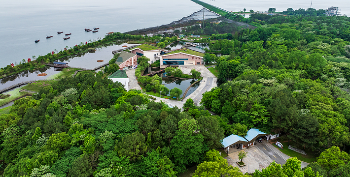 鄱阳湖国家湿地公园是世界六大湿地之一。湿地公园总面积为36285.0公顷,其中湿地总面积为35116.1公顷,占土地总面积的96.8%。这里是著名的观鸟胜境,是世界著名的生态湿地和候鸟保护区。这里夏季有夏候鸟——鹭鸟,冬季有冬候鸟——天鹅、白鹤、东方白鹳等。世界上现存的白鹤有4000多只,一到冬天98%的天鹅、白鹤会选择到鄱阳湖越冬,场面非常壮观”石碑和我国古代十二大烈女之一的鄱阳湖女神——饶娥铜像。其中饶娥神像高38米,是今日景区的标识之一。