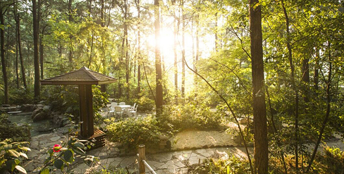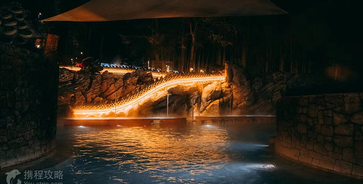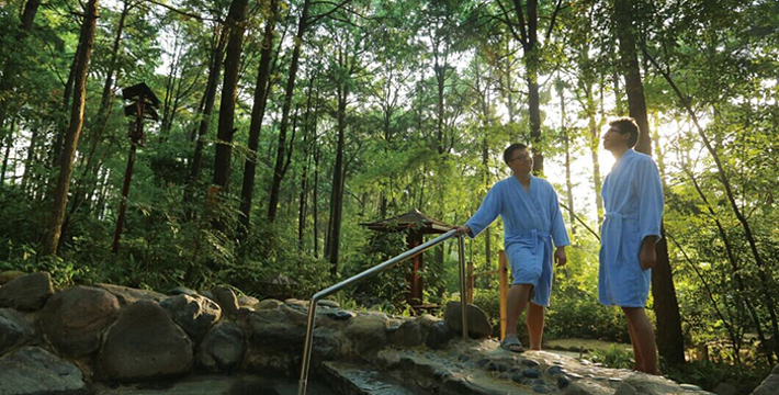 37个日式温泉大小不一被撒落在60亩原始森林之中,如颗颗宝石斑斓多彩,似粒粒翡翠晶莹玉透,更有小溪潺潺、瀑布悬挂、起伏迭宕,穿过座座小桥,让你沉醉其中。