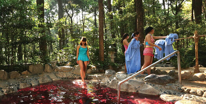 5.选择适应自身的高、中、低温度的温泉池,一般从低温到高温,每次不宜超过15分钟,及时补充水分。