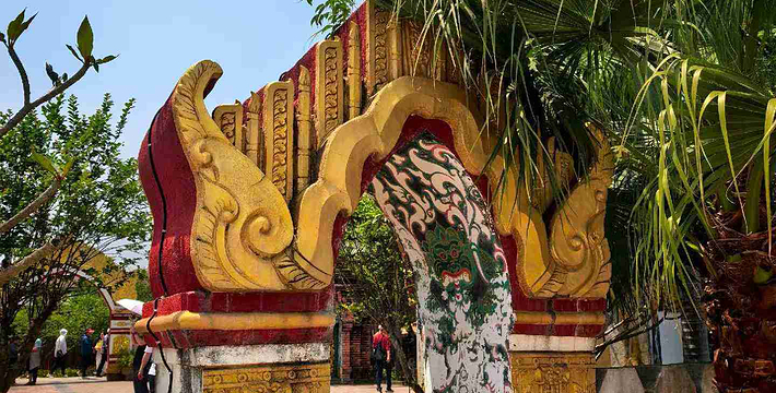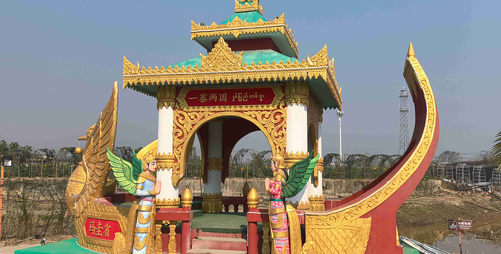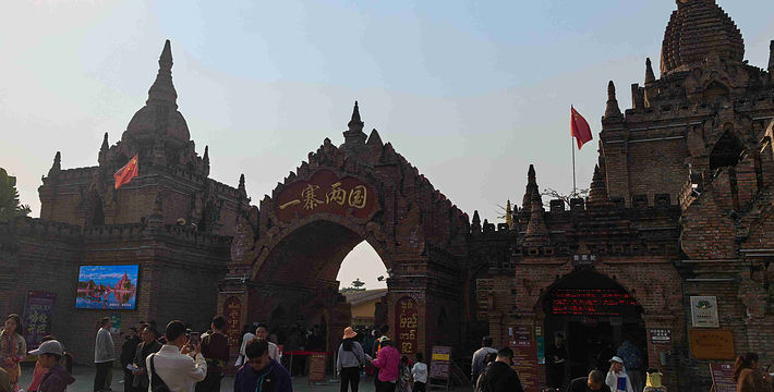 瑞丽市西南约11公里,有一个世界少有的边境人文地理景观小寨--银井。有名的中缅边境71号界碑矗立寨中,国界线从该寨中央蜿蜒划过,是个典型的“一寨两国”边境地区。从瑞丽至弄岛的公路将同一傣族村寨一分为二,中方一侧的称为银井,缅方一侧的称为芒秀。寨中的国境线以竹棚、村道、水沟、土埂为界,因此,中国的瓜藤爬到缅甸的竹篱上去结瓜,缅甸的母鸡跑到中国居民家里生蛋便成了常有的事,边民们每月数十次地穿越神圣的国境线而浑然不觉。寨子里的老百姓语言相通、习俗相同,他们同走一条路,共饮一井水,同赶一场集,和睦相处。榕树在德宏是一道独特的风景线。无论山坝间、村寨里、道路旁都有种植,要么独树成林,要么榕树相连成片。人们视榕树为神树,只种不砍。这颗迎客榕并不算大,在德宏州内排行老五,但它树型奇特,左右前后姿势多变,于是为众多影视专家所青睐,如如《边寨烽火》、《孔雀公主》、《带手铐的旅客》、《西游记》等十多部影视片都在这里拍摄过外景,著名影星王晓棠在这树上打过秋千,刘晓庆在树林中流连忘返。 它的奇妙、秀丽一定会让你惊叹不已。