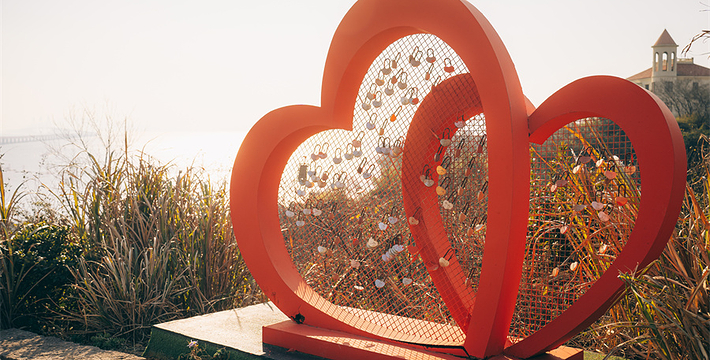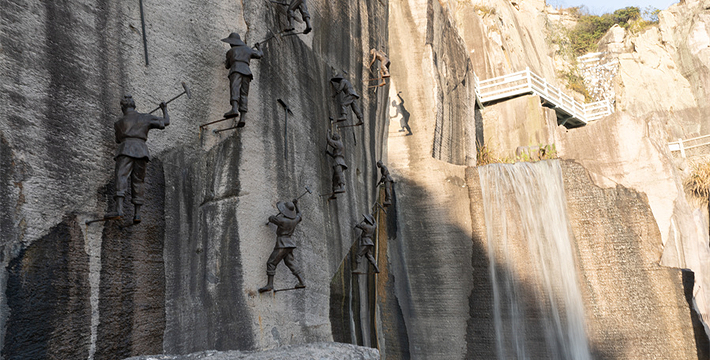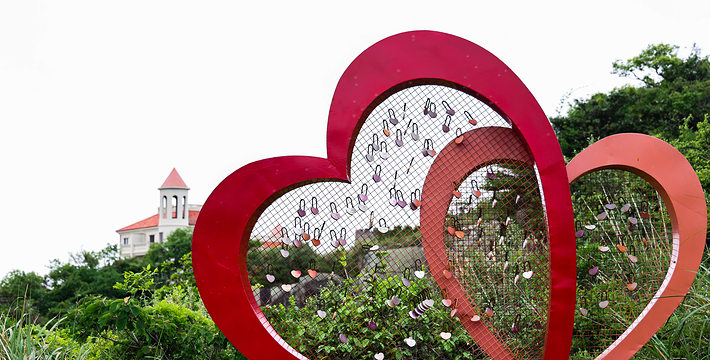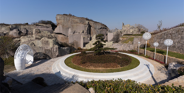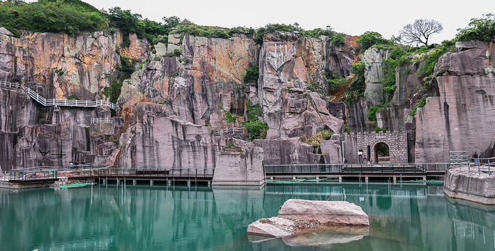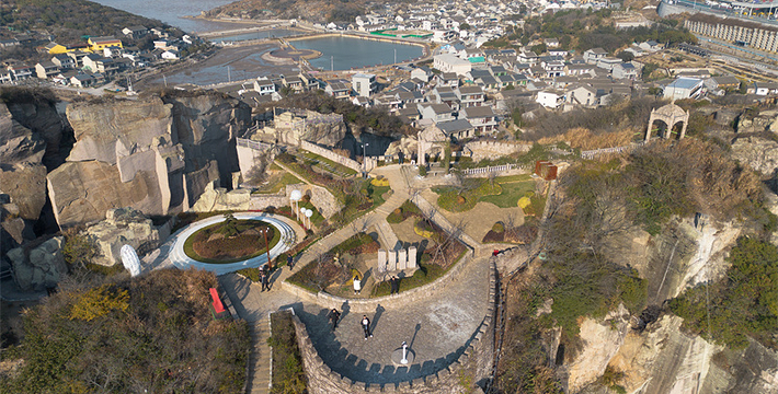 此地享有盛名的石板,质细而坚韧,经当地人民五六百年世世代代的艰辛取石开凿和大自然的鬼斧神工,至今留有石景旧迹50多处,奇石怪洞,形各有状。有雄伟挺拔的石峰,有形如刀削的石壁,有清晰见底的石潭。进入类似欧式城堡的大门,沿塘口下窥,洞深幽静,碧水挽天;沿塘上望,峭壁戴云。当海岛夕阳投在石壁上,远眺近看,霞光如虹。“石壁残照”已被选为古蓬莱仙岛十景之一。不仅如此,双合石壁新景还赋予了浪漫的元素。蜜月之约、海誓山盟;天涯海角、永结同心;城堡探密、喜获吉祥等互动性节目增添了甜蜜、和谐的旅游气氛。在景区周围已规划好了展示世界各地石文化的广场和集海岛度假村、海景房产、观光休闲娱乐设施为一体的东方蜜月城堡。