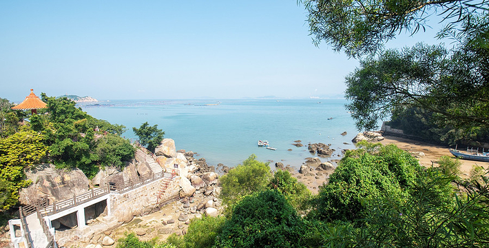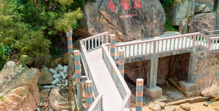 金银岛是央视《南澳岛寻宝》专题片拍摄地之一,可能是传说中吴平藏宝地。金银岛面积大约1千平方米,三面环海,碧波荡漾,岛上由天然花岗岩大石相叠而成,曲径通幽,石洞穿插,阴凉无比。在雨伞型亭子前面,坐着一位美娘子石雕像,人物造型是吴平的妹妹。她一手抚着元宝,一手接着剑柄,一副守护宝物的样子,据说摸摸她手上的元宝,还会给人带来不少“财气”呢。她身旁石壁上刻着《金银岛纪事》等碑记。周围林立的怪石,刻有名家手笔的各种妙诗和佳墨。