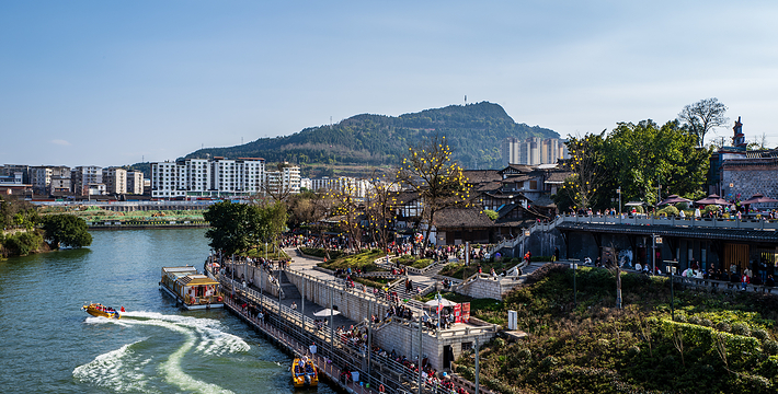城镇内有四川省规模较大成片保存较为完好的明、清时代古建筑群,老场和回龙区至今仍然完整地保存着传统的格局,面积达0.5平方公里,有古朴的大小街巷38条、古榕树82株,古建筑具有浓郁的川北民居风格,建筑群中有文昌阁、禹王宫、武圣宫等标志性建筑10余处。