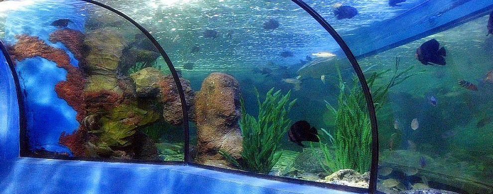 亚克力透明玻璃构成的隧道、百余种海洋鱼类、漫步海底,领略迷人的海底景观。