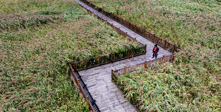 鼎翔苇海蟹滩绕阳河口湿地,北枕医巫闾,南衔辽东湾,座落于辽河与绕阳河交汇之三角洲。仅此,足可纵观被科学家喻为“地球肾脏”的滨海湿地之独特自然生态景观——苇海蟹滩。于晴日近观远眺,蒹葭萋萋,飞青舞碧,舒剑叶接翠天涯,微风助浪苇海泛蜃光,芦荡深处藏世界,拂面飘来端午粽子香。凭亭栏极目,如练辽绕携手处,不是泾渭却分明,如动脉滋养湿
