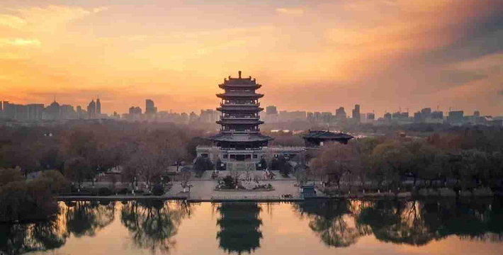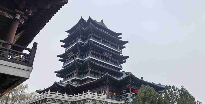 ——超然楼,位于济南大明湖畔。是一座拥有几百年历史的名楼,始建于元代。超然楼建筑面积5673平方米,坐落在宽大的汉白玉基上,顶覆铜瓦,楼高51.7米,上下共分七层,气势非常宏伟,号称""。超然楼是大明湖扩建改造工程的主要内容,主要以展现济南泉城文化,城市园林文化及老济南的民族文化为主。