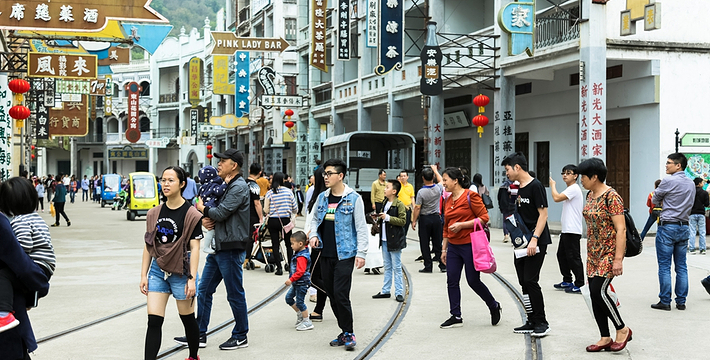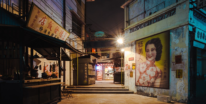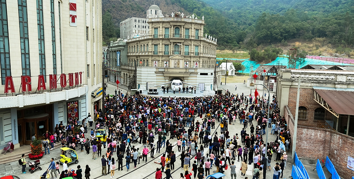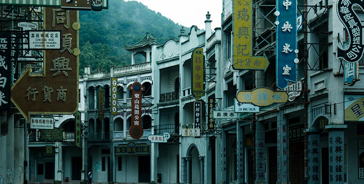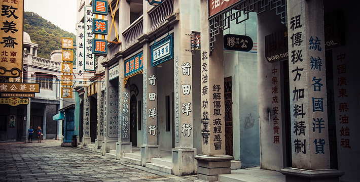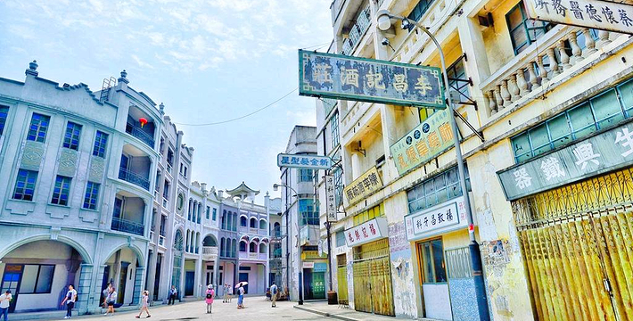 香港街,主体建筑还原30-70年代港式原味怀旧风物。作为影城王 牌取景地之一,曾拍摄《追龙》、《叶问终 极一战》、《张天志》、《橙红年代》等影视剧作。 九龙城寨,时光倒流到上个世纪六七十年代,在香港九龙城仅有0.026平方公里的土地上,伫立着一个人口密度高达每平方公里190万人的建筑群,曾经充满神秘色彩的三不管地带。大量的场景在此逐一被细致还原。