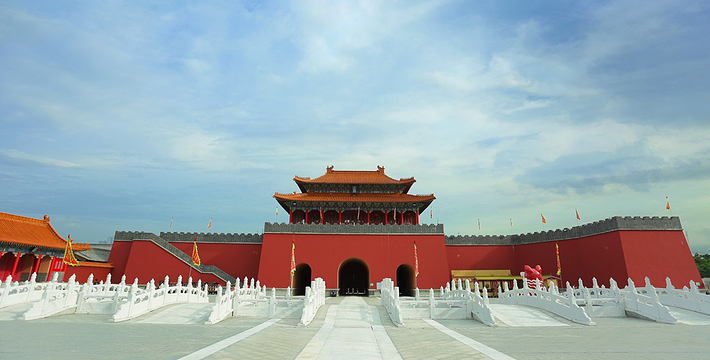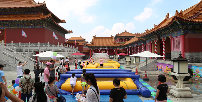 以北京故宮为蓝本,1:4还原建造午门、金水桥、太和殿、乾清宫等多处具有代表性的宫殿建筑,黄瓦红墙,玉栏雕栋,龙阙凤簪,壮丽雄伟。