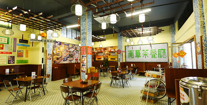 南华餐厅,还原传统港式饮食文化,点一杯趣味复古的倒樽奶茶,配一份外皮酥香内心软绵的菠萝包,香港电影的茶餐厅情怀画面瞬间定格。还有岭南风味一条街、特色甜点专区、香港和樵山特产纪念品专区,以及打造西樵本土滋味的樵南一品酒楼等休闲餐饮,带你体验怀旧风情的舌尖魅力。