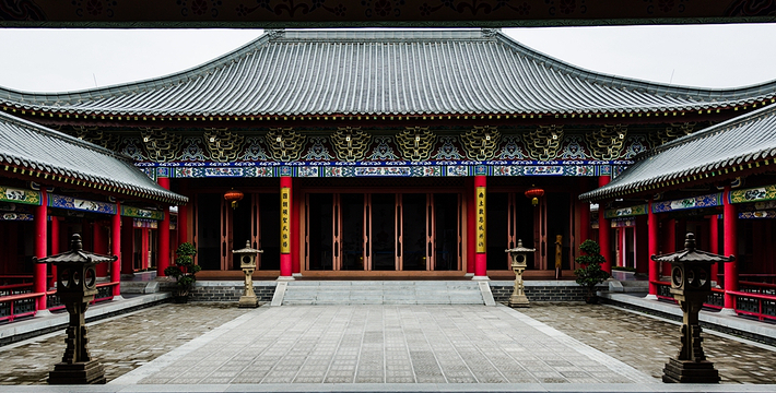 独具年代印记、地域特色的徽派建筑——江南古大宅。高耸的马头墙、细致的建筑雕刻艺术展现了典型的江南建筑形态。在缜密的布局中陈列展示多彩的岭南特色文化,两种文化以两种形态在此碰撞,平分秋色。