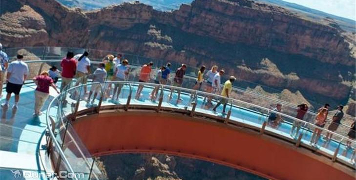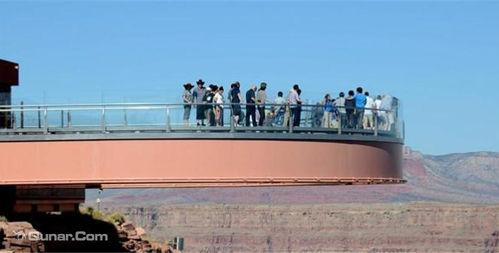 早晨离开拉斯维加斯,前往大峡谷西部。我们将进入瓦拉派印第安人保留地到达大峡谷西部。你将沿着大峡谷边缘欣赏这个伟大的自然的奇迹。你也可以体验和走在人行玻璃天桥。这u型平台在峡谷边缘向外延伸70英尺,离地面高达4000英尺。你也可以选择乘坐直升飞机航班到大峡谷&沿着科罗拉多河上驳船船巡航。——人行天桥。