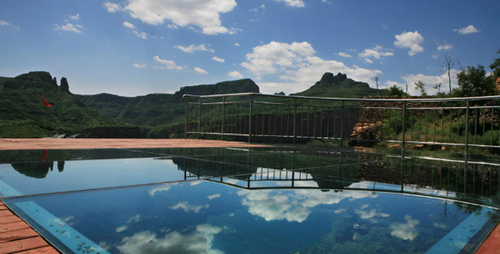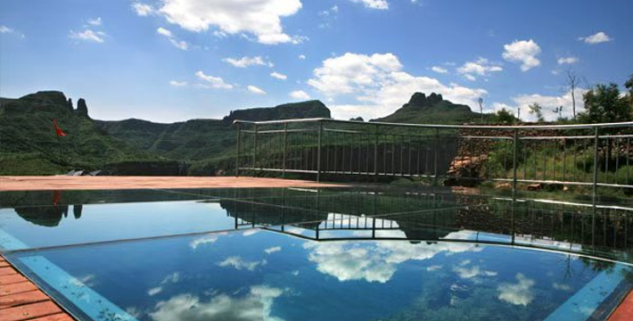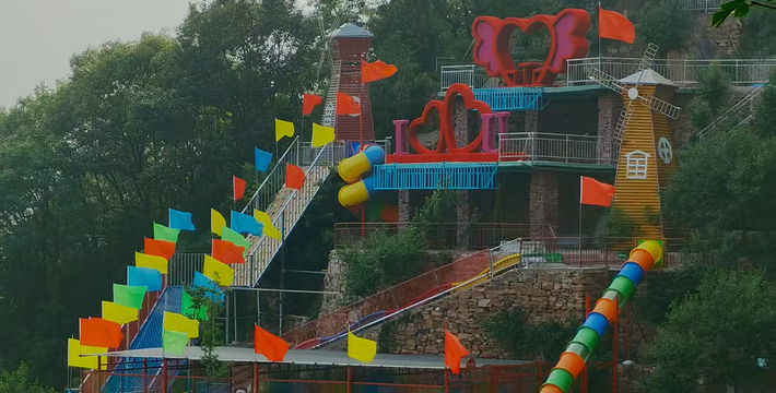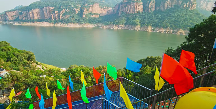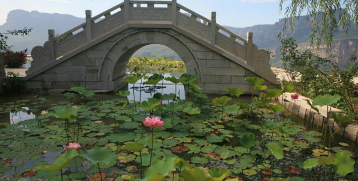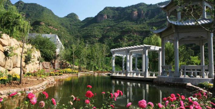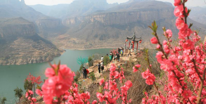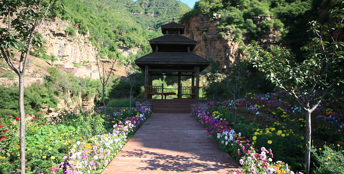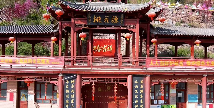 沙河市桃花园风景区位于沙河市西部秦王湖北岸,距沙河市区45公里。这里有优越的旅游资源。浩瀚的秦王湖碧玉般横卧于脚下;对面山峦起伏,山形俊美;登高望远,视野开阔,风景如画。背后群山连绵起伏,如太师椅般围合左右,远处横亘的山脊上,向南均匀地延伸出五条山峰,如五条巨龙奔跃而来。当地人称之为“五龙捧胜”,并口耳相传着一个壮美的故事:西汉末年,王莽篡位,追杀汉室宗亲刘秀至此。刘秀疲于奔命,落荒而逃,藏身于山上的一个石洞中,侥幸躲过一劫。日后刘秀重整旗鼓,战败王莽,恢复汉室,是为东汉光武皇帝。时至今日,当地人还津津乐道,称此山为“金銮殿”。沙河市桃花园风景区依据优美的自然风光,建成一系列特色建筑,营造出一片山水园林,使游客游的是北方山水,赏的是南方园林。沙河市桃花园风景区山泉潺潺,水体丰富。微风吹来,水雾拂面,涉水戏鱼,临岸逗鸭,可享受难得的亲水体验.桃花源植物繁茂,花木喜人。初春桃花满山,樱花飞雪,梅花报春,牡丹竞秀;盛夏荷叶摇曳,荷花送香,百花争艳,蜂蝶嬉戏;金秋天高气爽,色彩缤纷,万木竞秀,硕果累累;隆冬银装素裹,松涛阵阵,见所未见,闻所未闻。河北省沙河市桃花源风景区是集青山秀水和园林建筑为一体的特色风景区。沙河“大裂峡”,V形峡谷、Ω形峡谷,经有关专家鉴定为典型的地质奇观,学术及观赏价值在全国领先。景区景观:沙河大裂峡、巨石长廊、曲阳石雕双层凉亭、仿古炭化木亭、悬崖飞瀑、桃花源大瀑布、悬空玻璃观光台等,雄壮、细腻、典雅、刺激,各具特色,雅俗共赏。景区植物:桃花、樱花、荷花、牡丹等上百种,繁花时节,姹紫嫣红,香风习习,空气清新,环境优美,是观赏、休闲、娱乐、健身的理想场所。沙河市桃花源风景区四季更替,风光各异。您若前来观光休闲,定会有世外桃源般的美好感受!