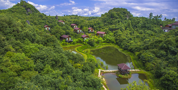 位于寨门入口左侧原始森林之中,蜿蜒曲折的神秘栈道,沿途俊美的自然风光,种类繁多的树木植被 ,沁人心扉的天然氧吧,丰富多彩的民俗展示,对歌台、观景亭、祭祀点等全程2公里。虎啸山林景区:位于进入可邑古村道路的左侧山顶, 18.2*7.2*17米高的巨大威猛石虎、傲视远方、守 卫山寨,宽大的基座四周雕刻着虎的图腾传说。