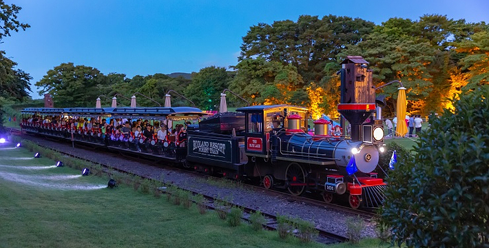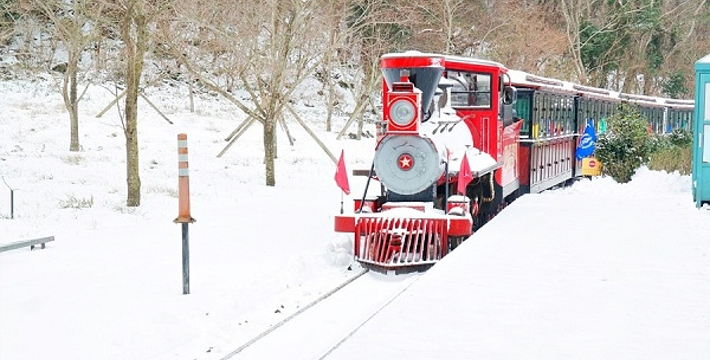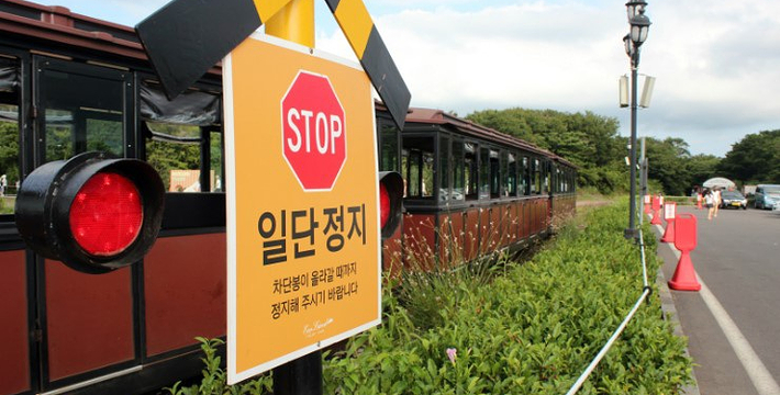 ECOLAND英式森林小火车于2010年11月17日开幕,占地30万坪,共有五部由英国手工打造的小火车,红色代表火山,黑色为玄武岩,黄色是油菜花,绿色象征绿地,蓝色则为蓝天。复古怀旧的英式森林小火车游览汉拏山原始林,探访神秘的森林活教材。由总站出发,沿途停靠E酷桥站、湖畔站、野餐庭院站、绿茶&玫瑰花园站(冬季不开放),游览E酷桥畔、静谧的湖岸咖啡厅、风车、三多庭园、儿童嬉戏区、野餐丘陵地、E酷小径、E酷小径咖啡厅、赤脚地衣体验地等,还有铁桥、啄木鸟隧道、堤防路、峡谷、溶岩、火山口、石墙、鸭子家族、兔子家族、熊熊家族等,可以看到大自然给我们的恩典。