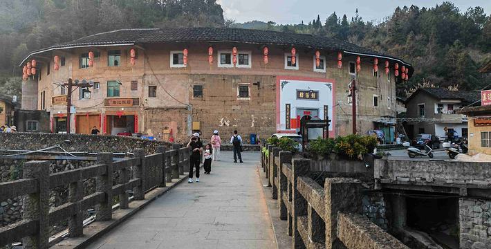 位于永定湖坑镇洪坑村。民俗文化村距离承启楼和高北土楼群4公里,距离南溪土楼群5公里,距离初溪土楼群40多公里。 永定车站可买去湖坑土楼文化村的车票,15元/人,40分钟左右一趟车,一小时左右到。 如从厦门湖滨南路车站坐往下洋的长途车,在湖坑站下车,景区售票处即在路边,购票后步行五六百米即可见土楼。 洪坑距离南靖土楼20多公里,可连同一起游玩,叫摩托车15分钟可到。