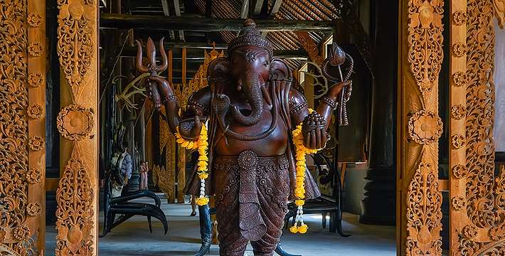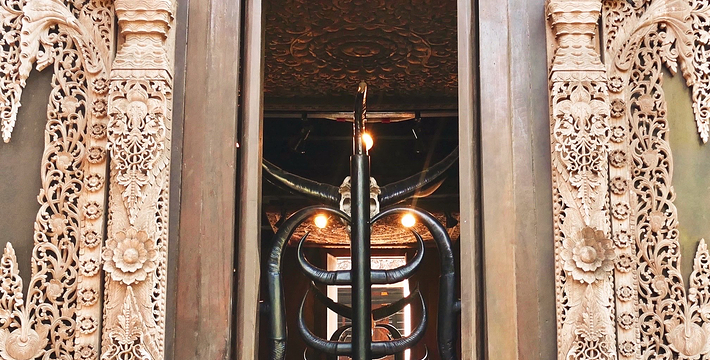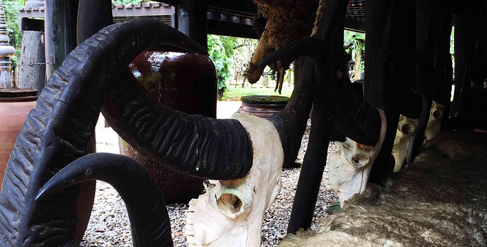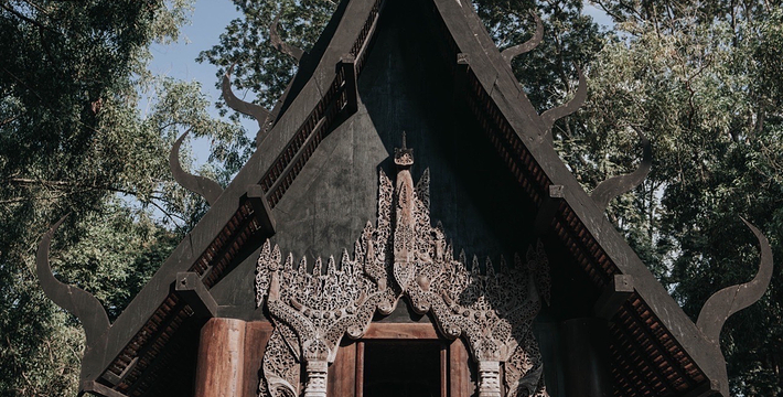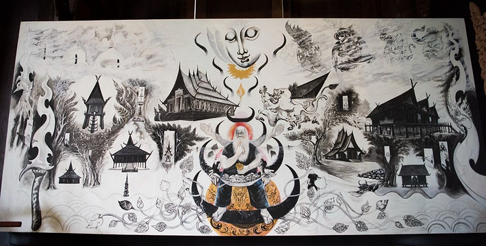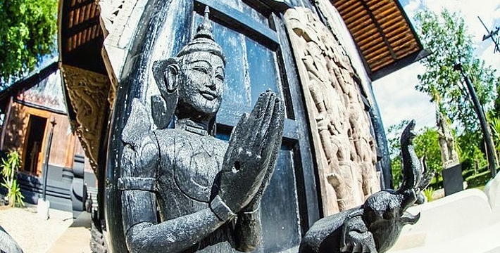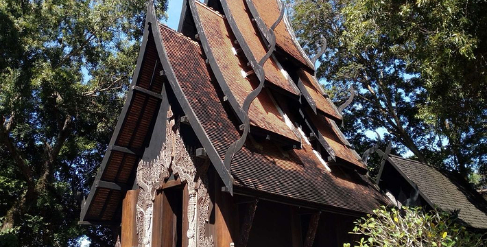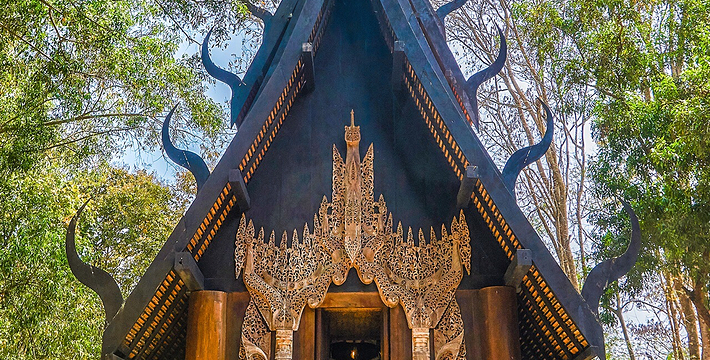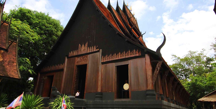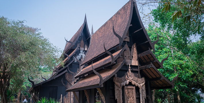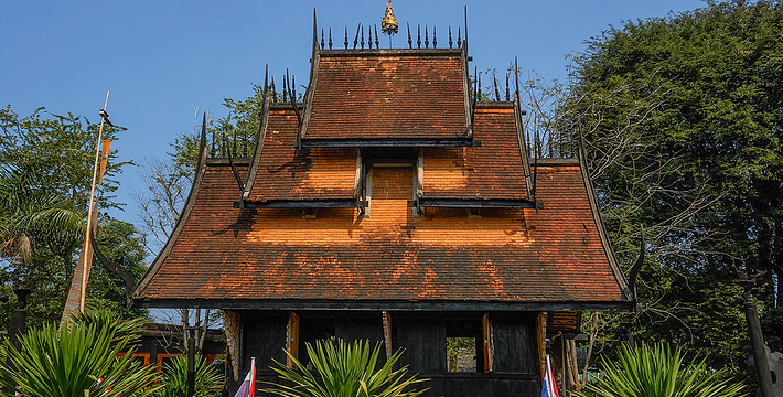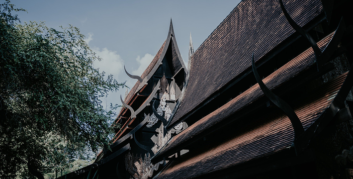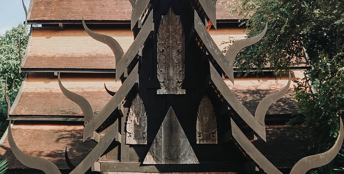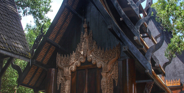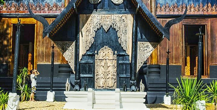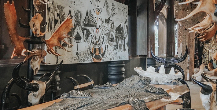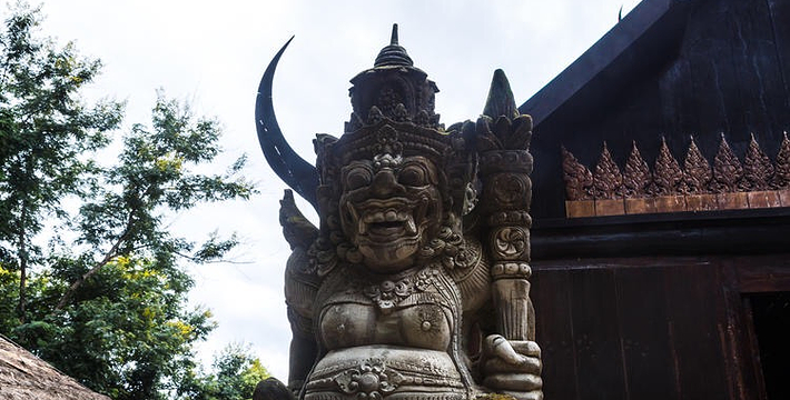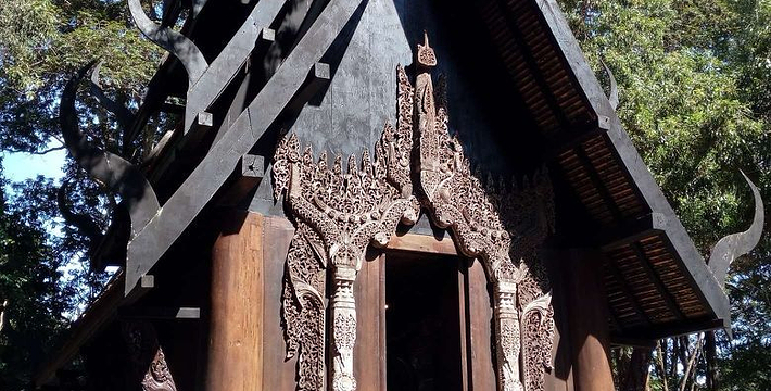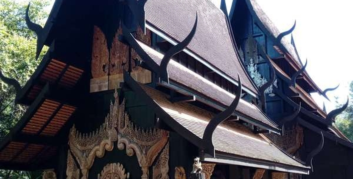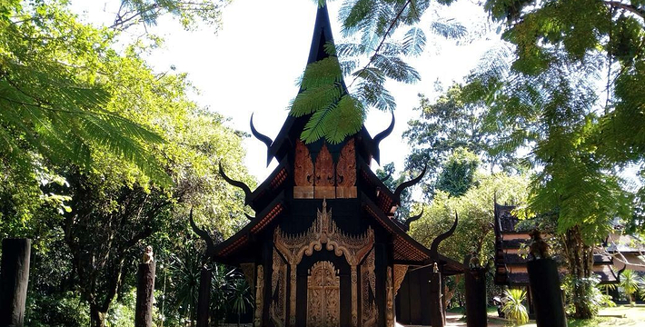 黑庙其实是由一位当地艺术家Thawan Duchanee设计建造的黑屋博物馆,位于泰缅老交界地带,其中放置了许多他收藏的珍贵古董,以及许多牛角、头骨、蟒蛇皮等标本,气氛压抑。人们常常将其与白庙一起提起,白庙为“天堂”,黑庙为“地狱”。