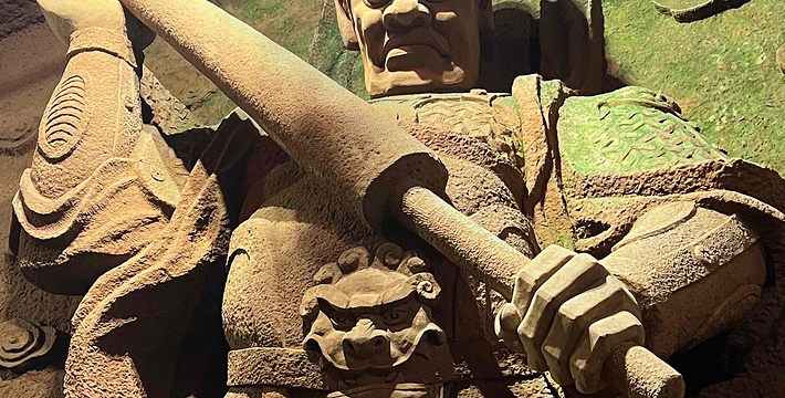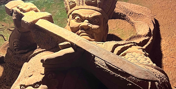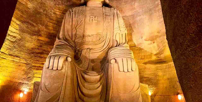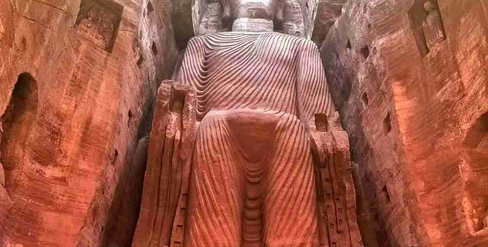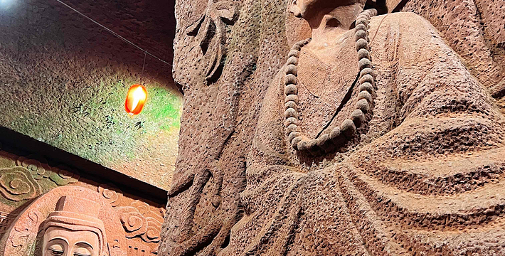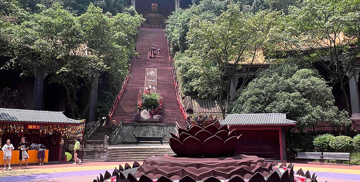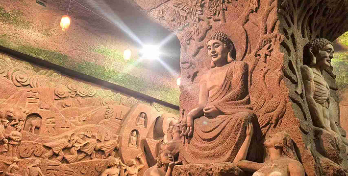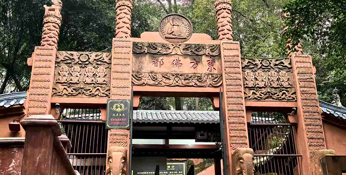 一座规模宏大的佛教艺术宝库――东方佛都,于1994年5月在中国乐山市建成开放。它距世界闻名的乐山大佛仅一里之遥,在20万平方米范围内,集中仿制了国内外佛像三千多尊,利用自然山体延伸,曲折蜿蜓地构成了壮观的佛教画卷长廊,采用摩崖圆雕、浮雕、雕刻、壁画等表现形式,选用不同材质,有石刻、铜铸、彩塑、墨玉等,充分体现了中国佛教和东南亚佛教艺术的风格。这里、体长170米的巨型卧佛,有我国历代佛像精品,以及东南亚和印度、日本等国家、地区的著名佛像,还有占地800多平方米的佛教艺术精品陈列馆。 东方佛都既不同于微缩景观,也有别于古人造像上大而粗糙,力求大而精美,仿中有创,重在神似,远观气势磅薄,近赏雕琢精细,可令君领略佛教艺术的博大精深。