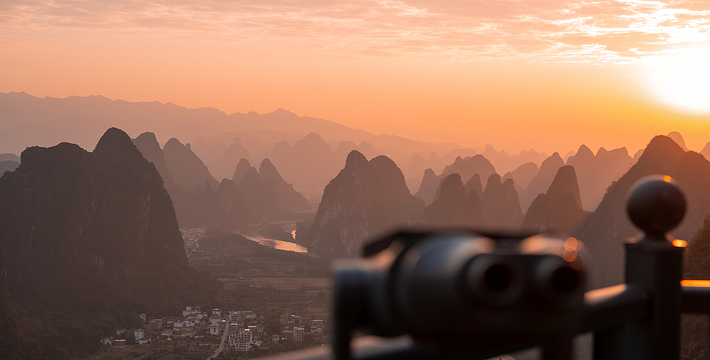 登上相公山举目远眺,群峰排列有序,清澈的漓江蜿蜒流淌在群山怀抱中。这里的光影、云海、日出、彩霞吸引了无数的摄影家和摄影爱好者,桂林摄影家在此拍摄的作品曾获第10届国际影展铜奖。碰上好天气在相公山上举目远望,就能感受到“桂林山水甲天下”,阳朔堪称甲桂林。群峰倒影山浮水,无水无山不入神”的意境。