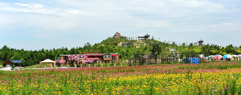 凤凰岭下花成海 争奇斗艳待君来。景点以“田园、风车、花海、河网、木屋、雕塑”为设计元素,打造集观光旅游、餐饮休憩、花卉种植、婚纱摄影等主题旅游休闲花园。在田园花海里,感受花影引人影,人影戏花影,花影醉波影,影影相随,互为依存,展示着人与自然和自然与人的美好和谐。