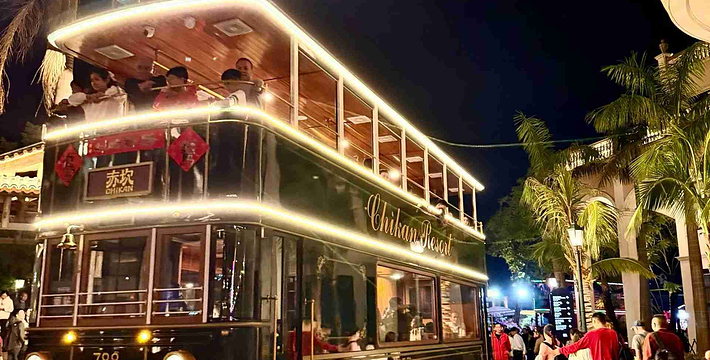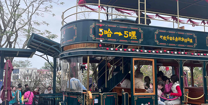 乘坐铛铛车带我们穿梭岭南风范的骑楼中,观光游览古色古香的建筑