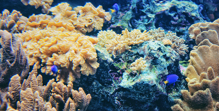 宛如童话般的珊瑚岛,模拟澳大利亚大堡礁的自然生态理念,色彩斑斓、姿态优美的自然珊瑚群在海底随波摇曳,形成了“海洋中的热带雨林”,在这里探索神秘的物种,追寻自然所赋予的美好。