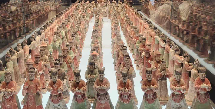 馆藏文物不仅数量多、种类全,而且品位高、价值广,商周青铜器精美绝伦,历代陶俑千姿百态,汉唐金银器独步全国,唐墓壁画举世无双。可谓琳琅满目、精品荟萃。