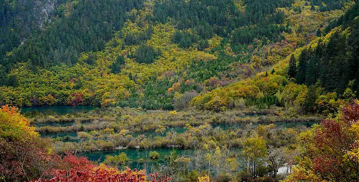 夏日,九寨沟掩映在苍翠欲滴的浓荫之中,您可以去五彩池赏杜鹃花,去诺日朗观瀑布,体会夏日清凉。