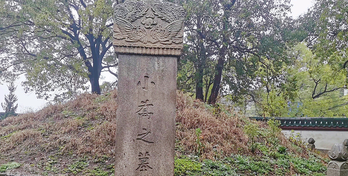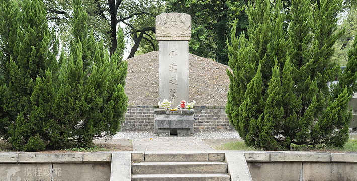 小乔墓地一带,传为三国周瑜军府,墓府为当时军府花园。墓地环境幽静,花木繁茂,墓顶植女贞二株。坟前墓碑高约一米,上书“小乔之墓”。清嘉庆前,墓内修葺情况没有记载。《巴陵县志》载:“嘉庆二年(公园1797年),知府沈延瑛重修”,以后又无记载。传闻光绪七年(公元1881年),督学陆保宗重新修建,并在冢上重植女贞二株。1993年又于墓南侧增建小乔墓庐,四周建有围墙。墓园内照壁,正面刻有宋苏东城手迹:“遥想公瑾当年,小乔初嫁了,雄姿英发”。墓冢圆形封土堆,墓周有游道,并增加石栏护围。园内建筑,为砖木结构,覆以青色琉璃,具有江南园林风格。