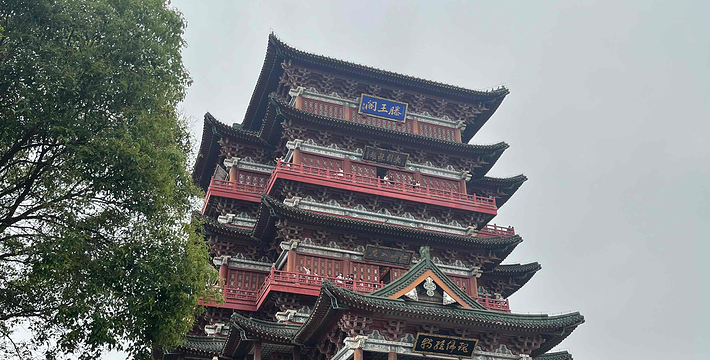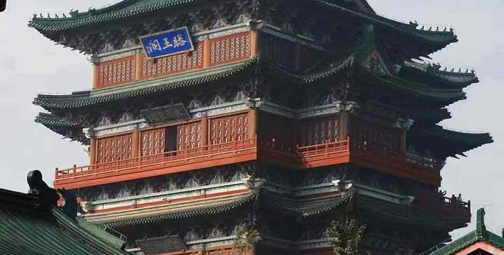 滕王阁位于南昌市西沿江北路,紧邻赣江之滨。滕王阁为唐永徽四年(653年),唐高祖李渊之子、唐太宗李世民之弟、滕王李元婴都督洪州(今南昌市)时所建,阁以其封号命名。滕王阁初建于今江西新建西章江门下,下临赣江。但历史上兴废29次,且阁址多变,在1928年被北洋军阀邓如琢烧毁。如今的滕王阁是在1989年10月28日(重阳节)重建后对外开放。今重修的滕王阁为混凝土、钢筋结构,高57.5米,上下共九层,比武汉黄鹤楼高出3.5米,建筑面积达11000平方米,内有电梯、照明、通水等现代设备,立面看,东西各异,南北相同。而黄鹤楼则四面一样。滕王阁为梁思成教授的门生、江西省轻工设计院高级建筑师陈星文设计。