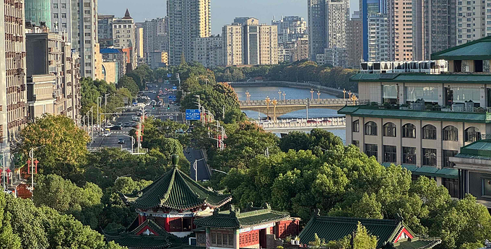 漫步回廊,眺望四周,江水苍茫,西山叠翠,南浦飞云,章江晓渡,山水之美,尽收眼底。