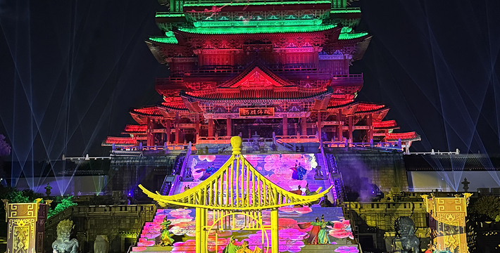 滕王阁的六层嵌有大型唐三彩壁画《大唐舞乐》。壁画中舞蹈者披甲执戟,具有浓厚的战斗气息和粗犷雄伟气势。