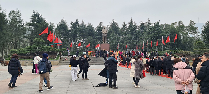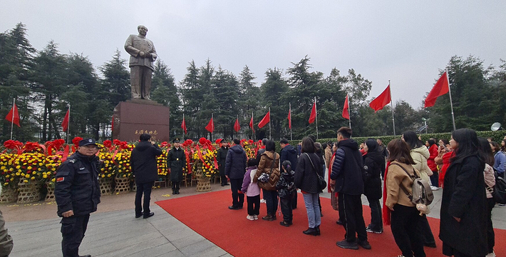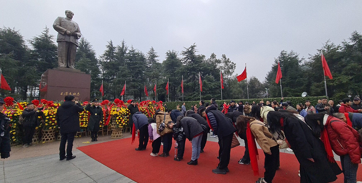 毛泽东铜像位于韶山毛泽东纪念馆大门前80米处,像区占地5200平米。是经中共中央批准兴建的纪念毛泽东百周年诞辰重点献礼工程。