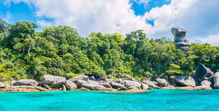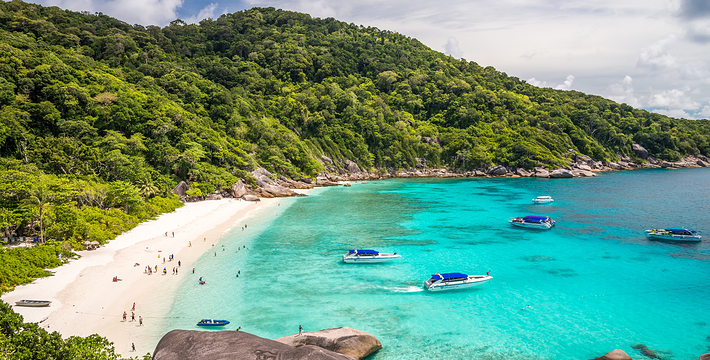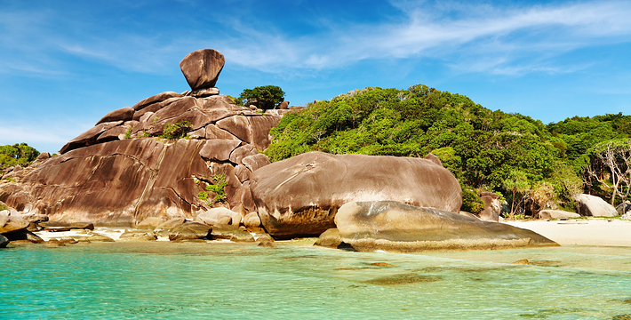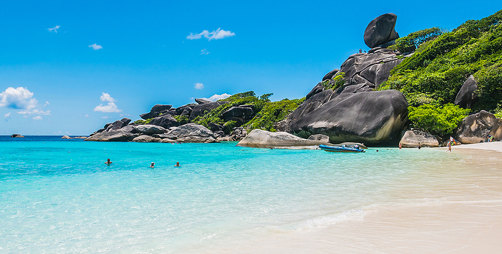 普吉岛有一日往返斯米兰的快艇行程,根据普吉岛所住酒店的位置, 6:00左右就会前往酒店接人,从蔻丽码头出发的时间为9:00-9:15。可以游览3-4个岛。浮潜是斯米兰游览的重头戏,这里除了各种热带鱼还有保育级动物海龟出没,运气好可以与海龟同游,为了保护自然生态的 平衡,在斯米兰海域不建议用面包人工喂食热带鱼,更不能用手触摸海 龟。 快艇行程中另外一个不容错过的景色就是位于8号岛的观景点“风帆石”,如果想到达山顶,只能靠踩踏出来的山路,拉着缆绳攀爬,但是 山顶上的风景会让人觉得一切都是值得的,从山顶可以看到超过180度 的海景,甚至可以看到清澈海水下的鱼。15:00从斯米兰启程返回码 头,约19:00能抵达位于普吉岛的酒店。由于往返路程时间很长,所以一日游的行程略显紧促,实际游览时间在5个小时左右,需要充沛的体 力,不适合携带年迈老人、幼儿出行。一日游价格在2500泰铢/人左 右。可以在各大旅游网站,淘宝或是普吉岛本地旅游柜台预定,代理的价格会比直接和运营公司网站便宜。 快艇公司: Love Andaman:loveandaman.com Sea Star:www.seastarandaman.net