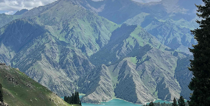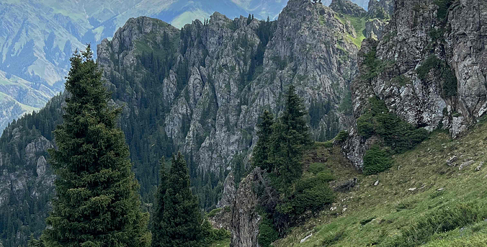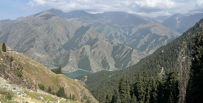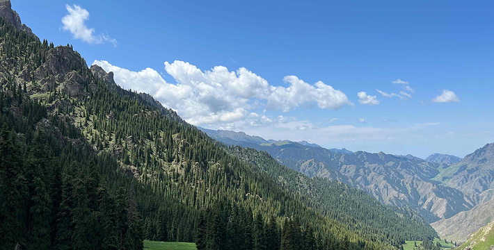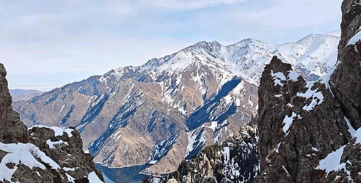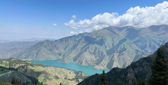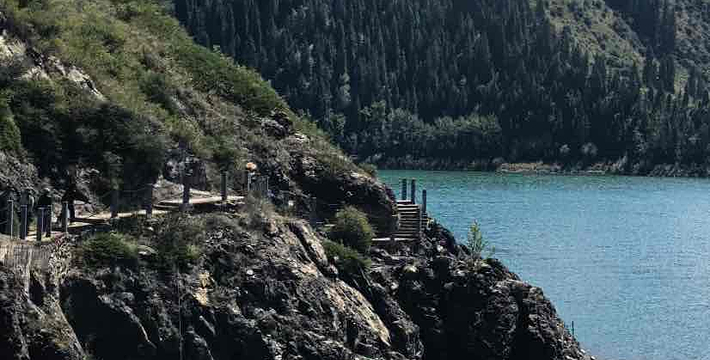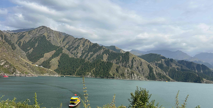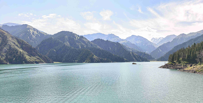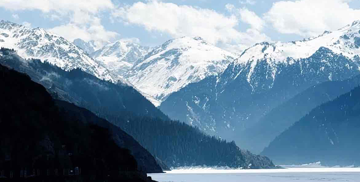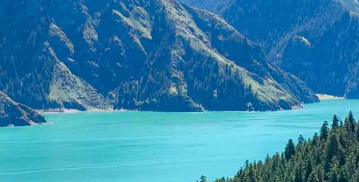 天山天池位于新疆阜康县境内的博格达峰下的半山腰,东距乌鲁木齐110公里,海拔1980米,是一个湖面呈半月形天然的高山湖泊。天山天池风景区以天池为中心,以完整的4个垂直自然景观带和雪山冰川、高山湖泊为主要特征,以远古瑶池西王母神话以及宗教和独特的民族民俗风情为文化内涵,融森林、草原、雪山、人文景观为一体,风光别具一格。天山天池的自然景色,既具峨眉之秀,又显华山之雄,更有别具一格的美:湖水清澈,晶莹如玉,清纯怡人;四周群山环抱,绿草如茵,野花似锦,有“天山明珠”盛誉;挺拔、苍翠的云杉、塔松,漫山遍岭,遮天蔽日,俨然一幅大自然的美丽画卷。天池自然保护区可分为“大天池北坡游览区”、“大天池游览区”、“十万罗汉涅般木山游览区”、“娘娘庙游览区”和“博格达峰北坡游览区”,每区八景,五区四十景。