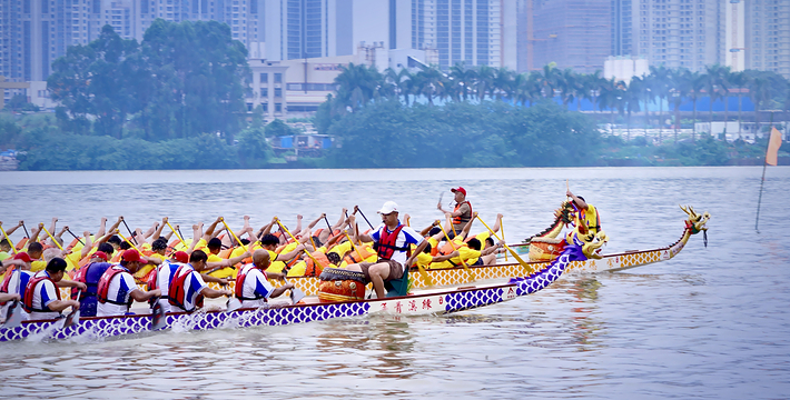 每年农历五月初四,岭南印象园的前身----练溪村,邀几十个兄弟村的龙船齐聚岭南印象园。早上,伴随着铿锵有力的鼓声,岭南印象园旁的江面上,上百条七彩龙船在劈波斩浪、挥浆驶来,在岭南印象园旁江面上竞渡,平静的江面顿时掀起阵阵激情。鼓声隆隆,鞭炮声震天,岸上围观的群众呐喊助威,场面“虚撼”。