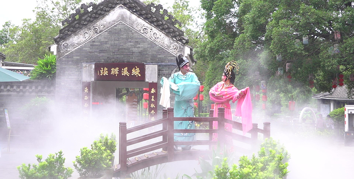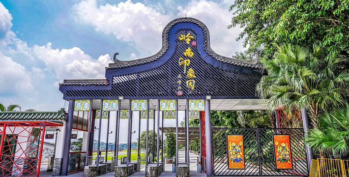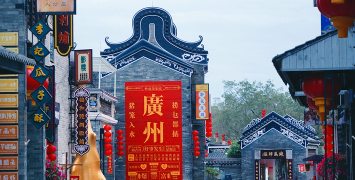 走“南沙快线”大学城收费站出口,沿指示牌车行约10分钟至岭南印象园景区停车场正门。