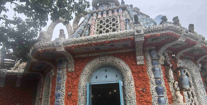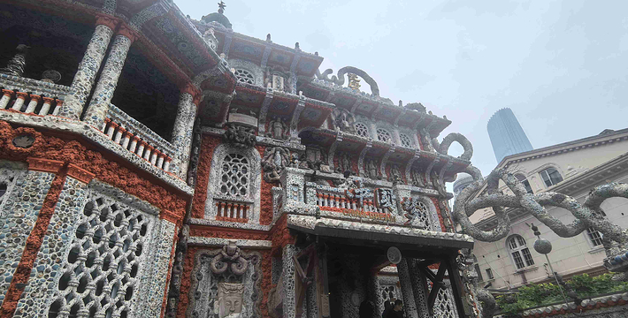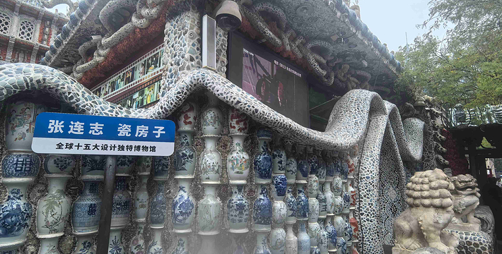 瓷房子地处繁华闹市区,距张学良故居非常近。瓷房子本是一座有着100多年历史的法式建筑,年久失修,闲置十余年。天津粤唯鲜集团董事长张连志在此基础上,耗费了及古瓷器将其装修成了瓷房子。瓷房子主楼分上下5层,其身后有一栋4层的条形楼房,两边还各有一座200多平米的耳房,总计建筑面积3000多平方米。为装饰这座瓷房子,用掉四亿多片古瓷片、四千多件古瓷器、四百多件汉白玉石雕和二十多吨水晶石与玛瑙,以及近百只瓷猫枕,三百多个年代不等、大小不一的石狮子等。在瓷房子所用瓷器和瓷片年代从汉代一直跨越到清代,窑址除五大名窑外还有龙泉窑、耀州窑等,中国所有官窑、民窑瓷的种类几乎都可以在这里看到。灿若繁星的东方中国古典艺术品与西洋建筑的完美结合都显露出设计者的宏大构思与精心策划,堪称一绝。瓷房子顶部用数十万块古瓷片镶贴成一条长达768米的巨龙浮雕China”醒目图案,旁边还有用水晶粘贴的“爱我中华”、红色五角星等图形,其他由水晶和汉白玉石拼贴的装饰物也随处可见。屋内墙上挂着的,是工匠师傅们用古瓷片拼贴成的古今中外的名人字画,如唐代《五牛图》、宋代《古木怪石图》、元代《鹰松图》等,每层楼都有四至五幅不等,从米芾到徐悲鸿,从《捣练图》到《蒙娜丽莎》,不一而足。瓷房子的围墙被称之为“平安墙”,“平”取谐音“瓶”而来,因为这围墙是由整整635个民国和晚清时期的古瓷瓶垒砌串联而成的。