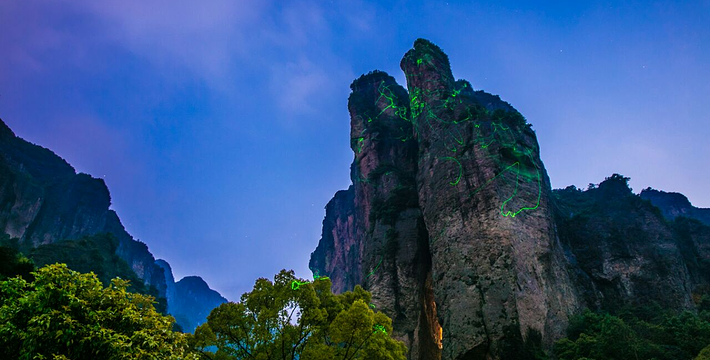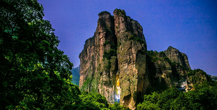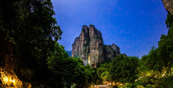 灵峰景区是雁荡山的精华景区之一,它位于雁荡山风景名胜区的东大门,东至蒲溪,南至白溪,西至乌岩尖,北至马家岭,总面积46平方公里,它与灵岩、大龙湫合称为“雁荡山三绝”。其中有26峰、3嶂、18涧、3瀑、34岩、5石、1尖、1天、3岭、5泉、3溪、1坑、4潭、1湖、4寺、2庵、7亭、4桥、2坊等大小景点共131个,以奇峰奇洞为主要特点。尤以夜景取胜。景区层峦叠嶂,奇峰环拱,千形万状,美不胜收,灵峰夜景以具独特的意境美、朦胧美和形象美。合掌峰是雁荡山的代表景观之一,峰内的观音洞,建有九叠危楼,建筑极具匠心,与天然的洞穴之美融为一体。道教的北斗洞、紫竹林,佛教的白云庵、观音洞分布在景区中,丰富了景区浓厚的宗教文化。还有凝碧潭、果盒桥、果盒岩称为“果盒三景”的一个组合,曲折幽奇的灵峰古洞,洞广深邃的东石梁洞,惟妙惟肖的接客僧和碧波荡漾的石门潭等,均为山中的著名景点。景区以其独特自然山水吸引古往今来的文人墨客纷至沓来。北宋科学家沈括,南宋状元王十朋,元代文学家李孝光,以及当代党和国家领导人李鹏、乔石、田纪云、李泽民等都写下了不朽的题刻,组成了丰富的人文景观。在夜幕降临之时,灵峰景区以独特的姿色展现自己,座座奇峰在夕阳的余光映衬下,犹如国画大师对灵峰大肆宣泄,勾成一幅幅洒脱自由的山水泼墨画。具有典型幽雅的朦胧美、形象美的夜景和浓郁的人情美组合了一副和谐的人生画图,真可谓是“日景耐看,夜景销魂”。如诗如画的夜景会让游客们尤如进入梦幻的仙境,勾起美好的一副副回忆。“清水出芙蓉,天然去雕饰”。它没有任何人工的痕迹,完全以天然的刀刃,给予你一种鬼斧神工的震撼力,这就是夜景。
